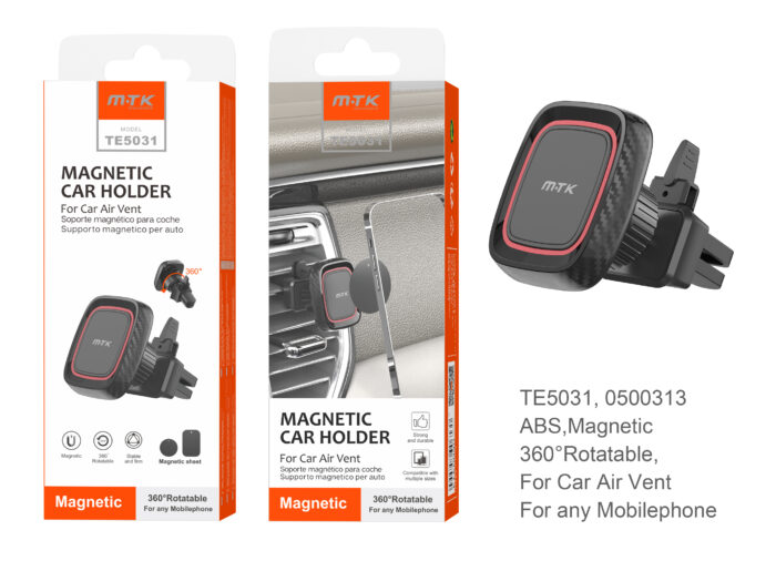 • TE5029 NE Soporte Universal de Movil Magnetico para Salpicadero y Parabrisa de coche, ajustable 360°grado, Negro