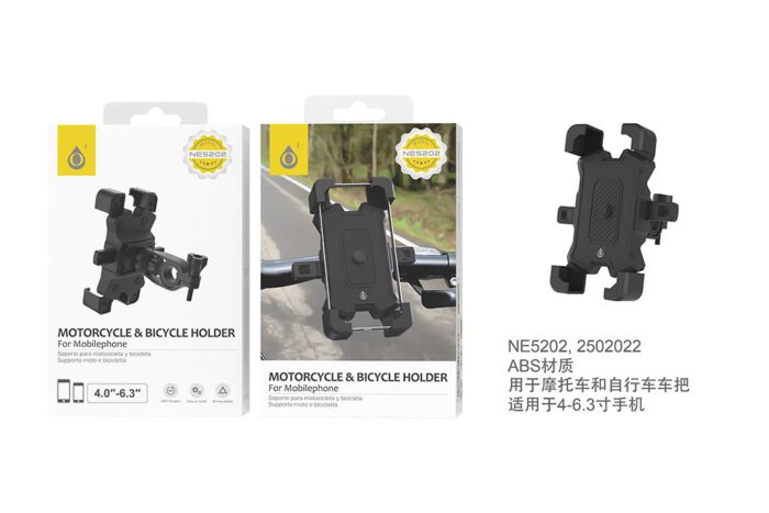 NE5202 NE Soporte Universal de Bici Y Moto, Para Moviles 4.0-6.3″, Negro