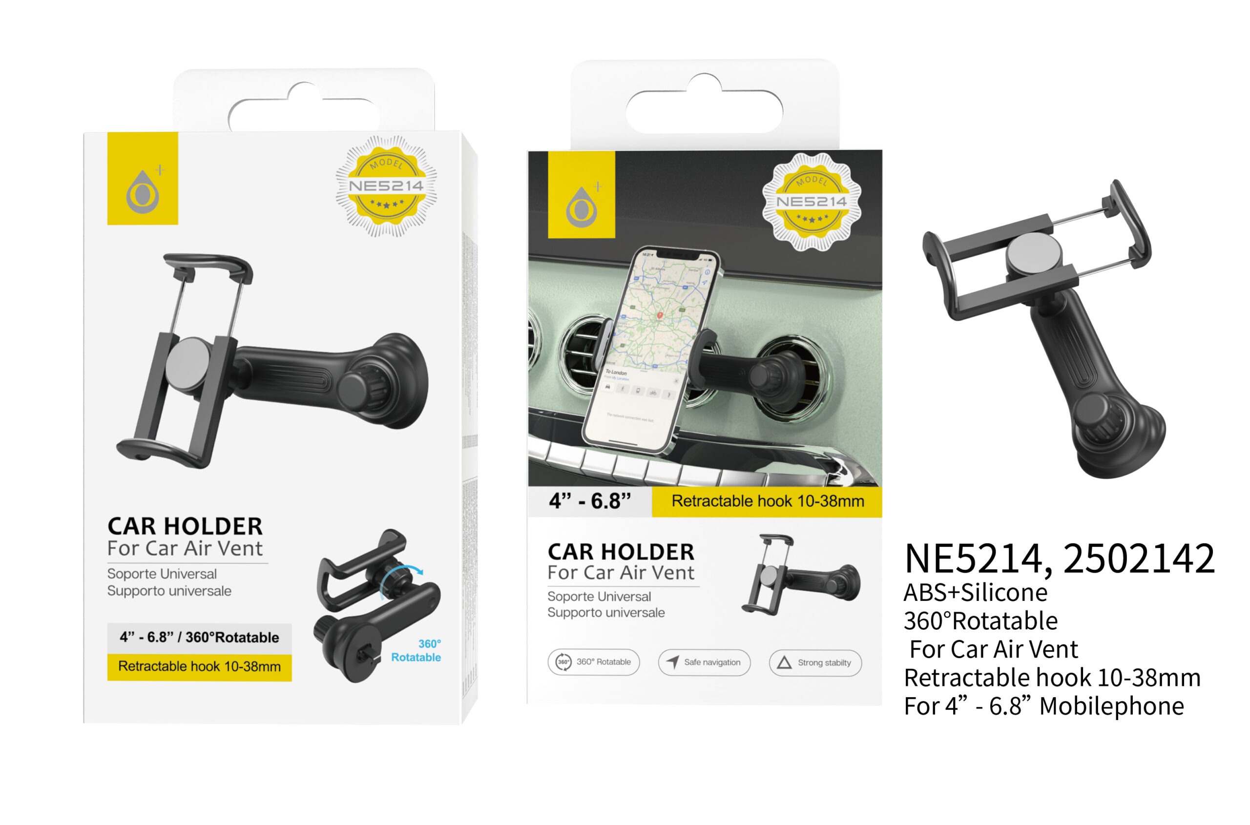 NE5214 NE Soporte Universal de coche retracil para movil airvent 360° giratoria , Para movil 4-6.8 P