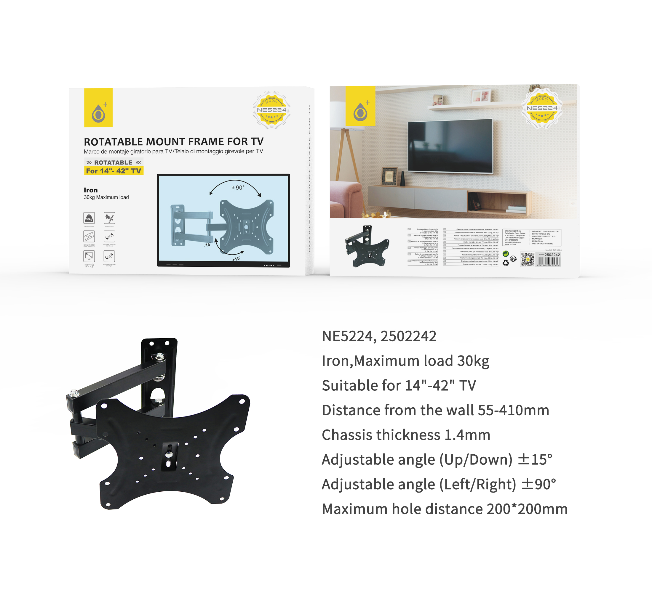 NE5224 NE Soporte  TV Inclinable y Giratorio, para Pantalla de 14-42 Pulgadas, Iron, Max 30Kg , Vesa max 20x20cm, Negro