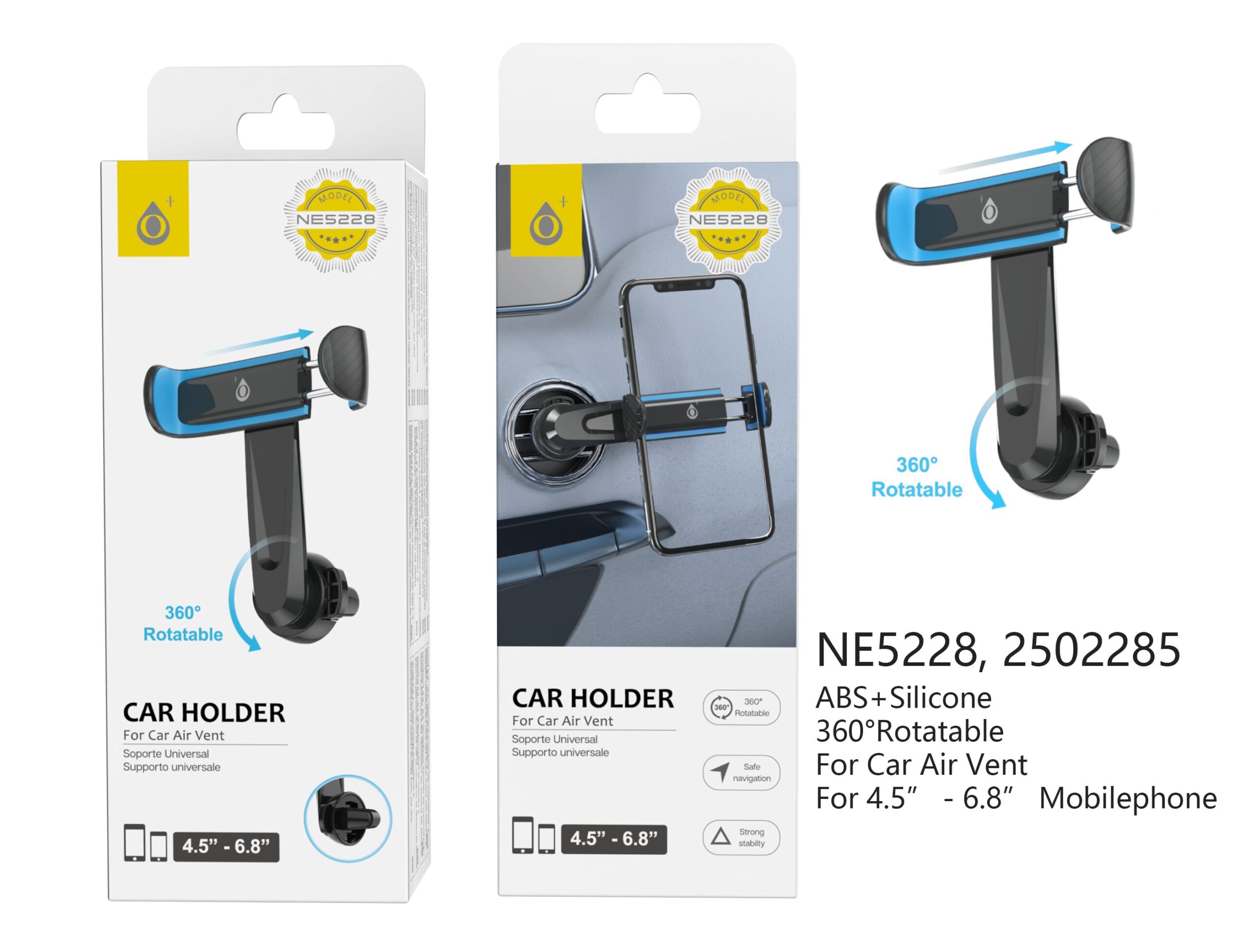 NE5228 AZ Soprte Universal de coche para movil airvent 360° giratoria , Para movil 4.5-6.8 , Azul