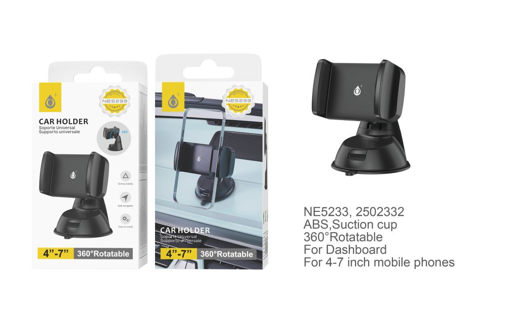 NE5233 NE Soporte Universal de movil para Salpicadero y Parabrisas, 360° Rotacion, Para movil 4-7 Pulgadas, Negro