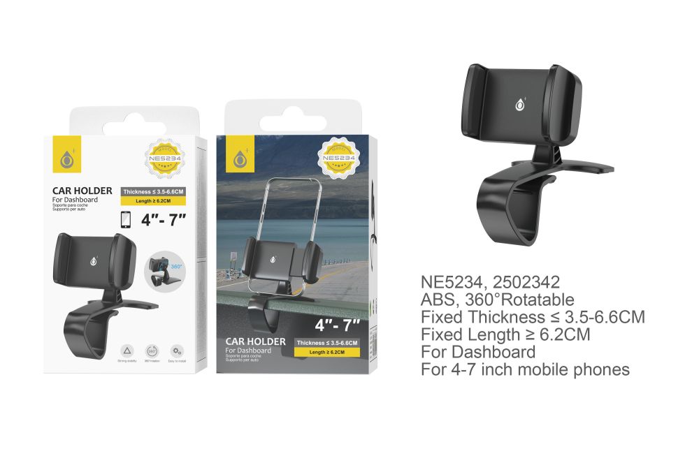 NE5234 NE Soporte Universal de movil para Salpicadero , 360° Rotacion, Para movil 4-7 Pulgadas, Negro