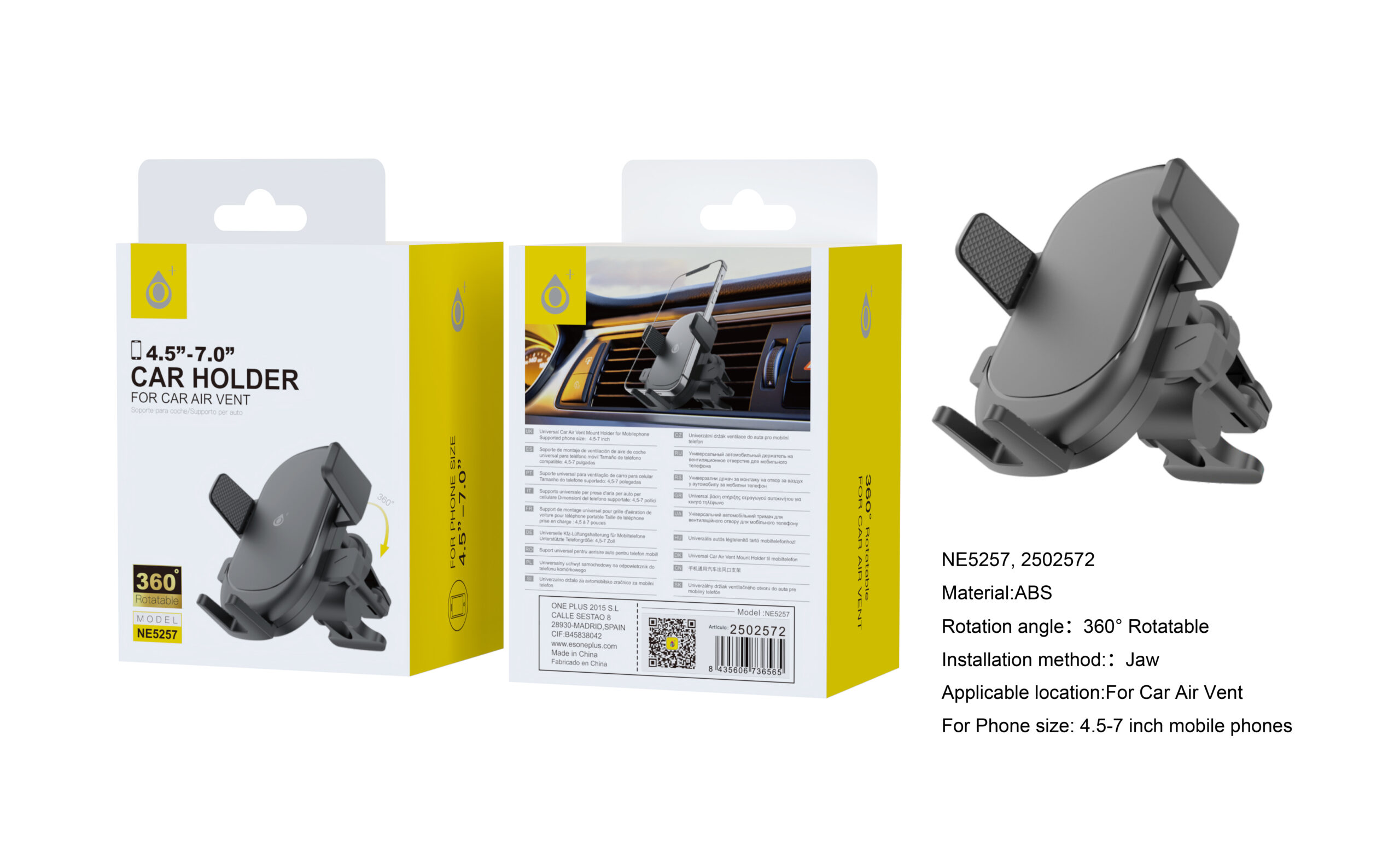 NE5257 NE Soporte Universal Airvent de coche para movil 4-7.5 Pulgadas, 360° Rotacion, Blanco