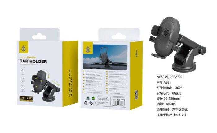 NE5279 NE Soporte universal de movil para Salpicadero y Parabrisas,Brazo Extensible 90-135mm ajustable 360°grado,Para Movil 4.5-7 Pulgadas,  Negro