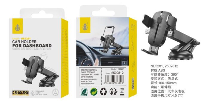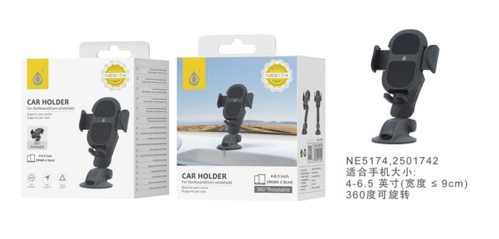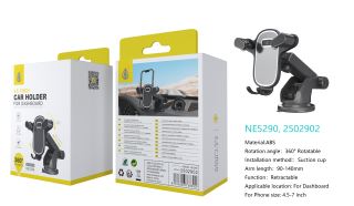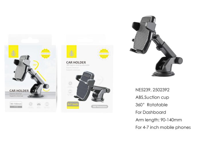NE5290 NE Soporte universal de movil para Salpicadero y Parabrisas , Brazo Extensible 90-140mm, 360° Giratoria ,Para Movil 4.5-7 Pulgadas, Negro