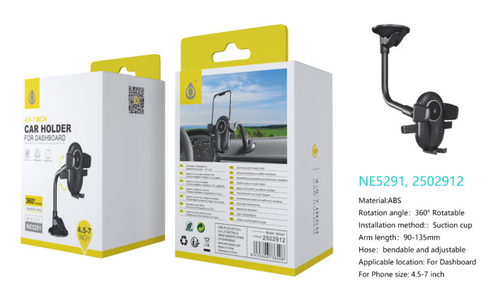NE5291 NE Soporte  Universal de movil para Salpicadero y Parabrisas, Brazo flexible, 360° Giratoria, 4.5-7 Pulgadas, Negro