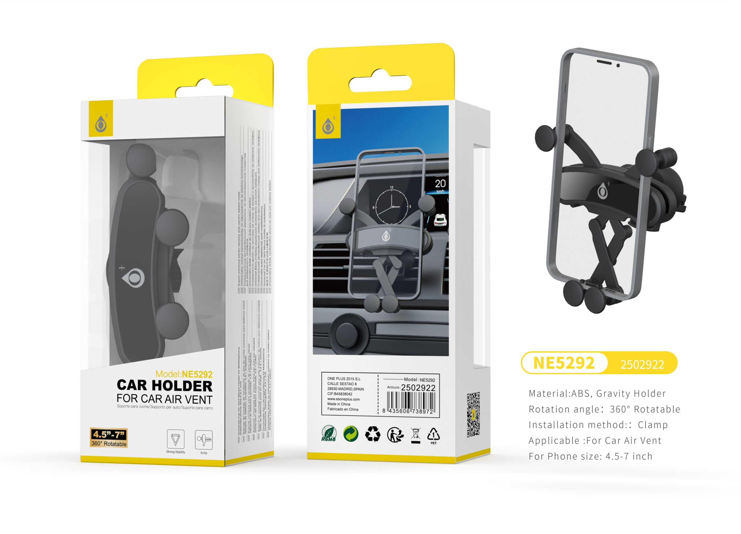 NE5292 NE Soporte Universal Gravedad De Movil Para Airvent Coche,Ajustable 360°, 4.5-7 Pulgadas