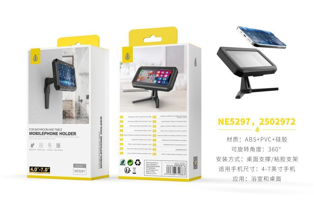 NE5297 NE Soporte Universal Impermeable de Movil para Mesa y Bano de ducha para Movil 4-7 Pulgadas, Negro