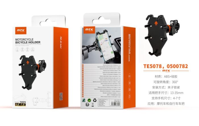 • TE5148 NE Luxury Soporte Universal de movil para bicicleta y moto , 360° Rotacion, 4-7 Pulgadas , Negro