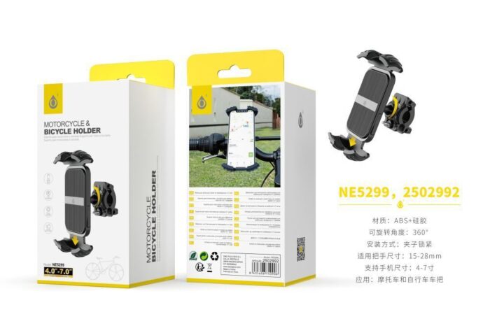 • NE5305 NE Soporte Universal de movil para Bicicleta y moto, 360° Rotacion, Para movil 4.5-7 Pulgadas, Negro