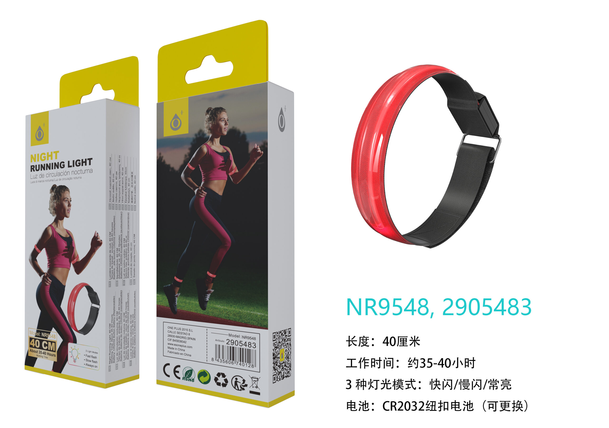 NE9548 RJ Brazalete con luz Led, 3 modes luz(continuo, flash y parpadeo), Bateria CR2032, 40cm, Rojo