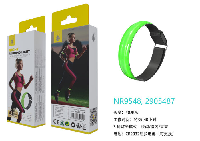 NE9548 VE Brazalete con luz Led, 3 modes luz(continuo, flash y parpadeo), Bateria CR2032, 40cm, Verde