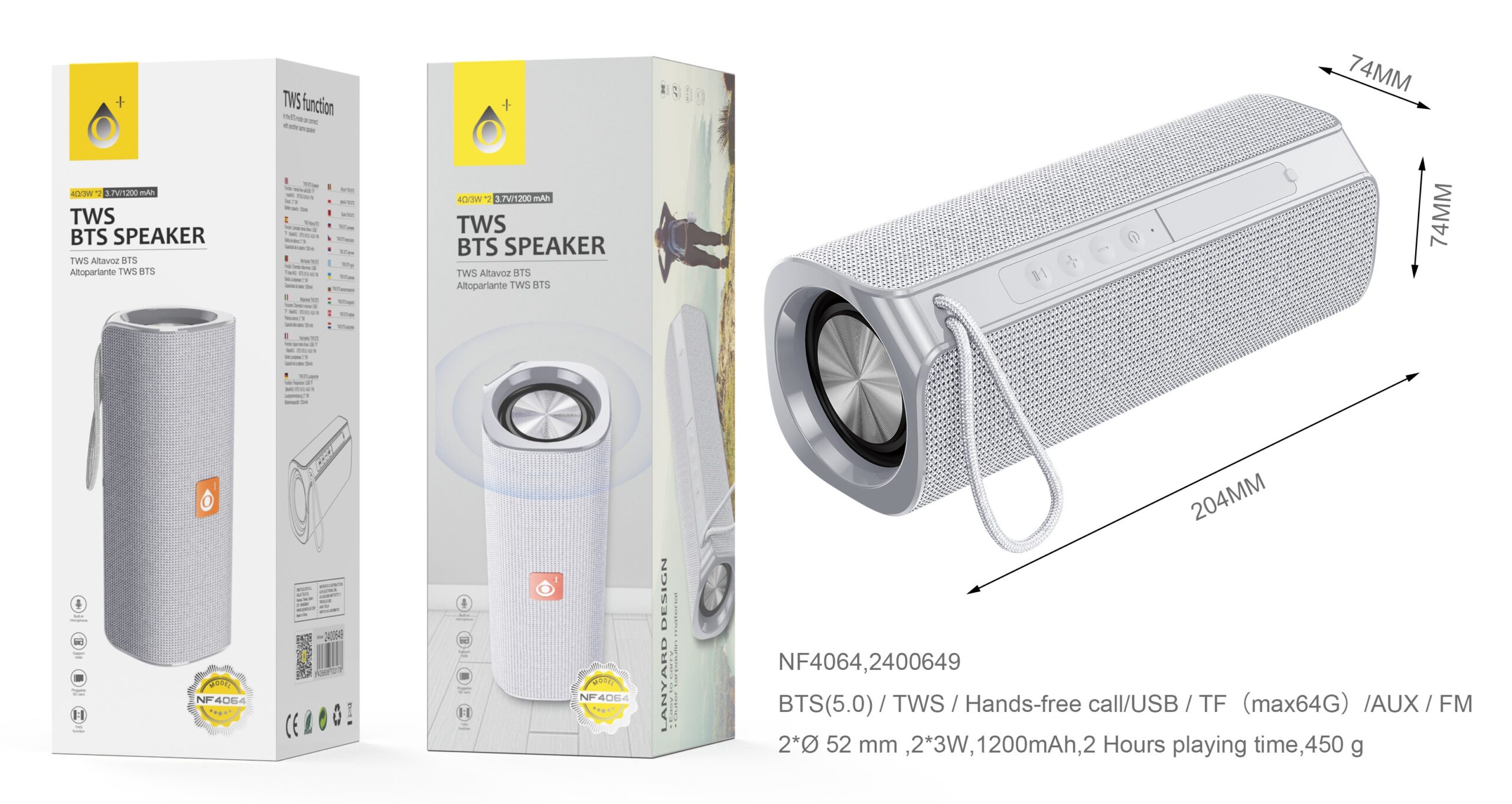 NF4064 GR Altavoz Blutooth 6W Estuche ,Con Funcion TWS ,Bateria 1200mAh, BTS 5,0 FM,USB,TF card,Audio Gris