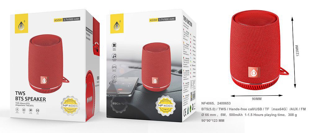 NF4065 RJ Altavoz Blutooth 5W Mini Estuche ,Con Funcion TWS ,Bateria 500 mAh,Microfono  BTS 5,0  FM,USB,TF card,Audio Rojo