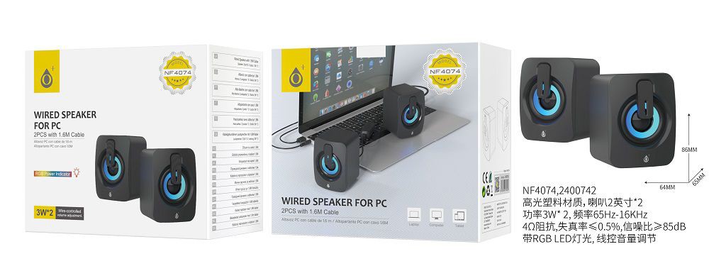 NF4074 NE Altavoz PC, 2*3W con Boton Contol de Volumen, Luz RGB , Negro