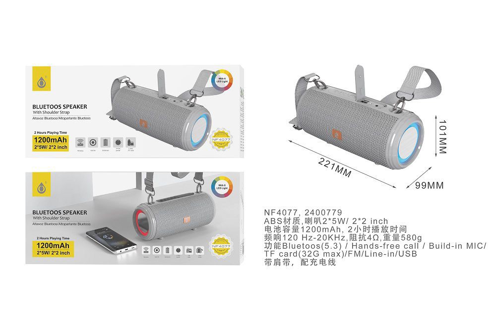 NF4077 GR Altavoz Blutooth Portátil con 7 luz LED 2x5W Reproduccion de Musica 2 hora ,Bateria 1200mAh, FM,USB,TF card,Audio ,Gris