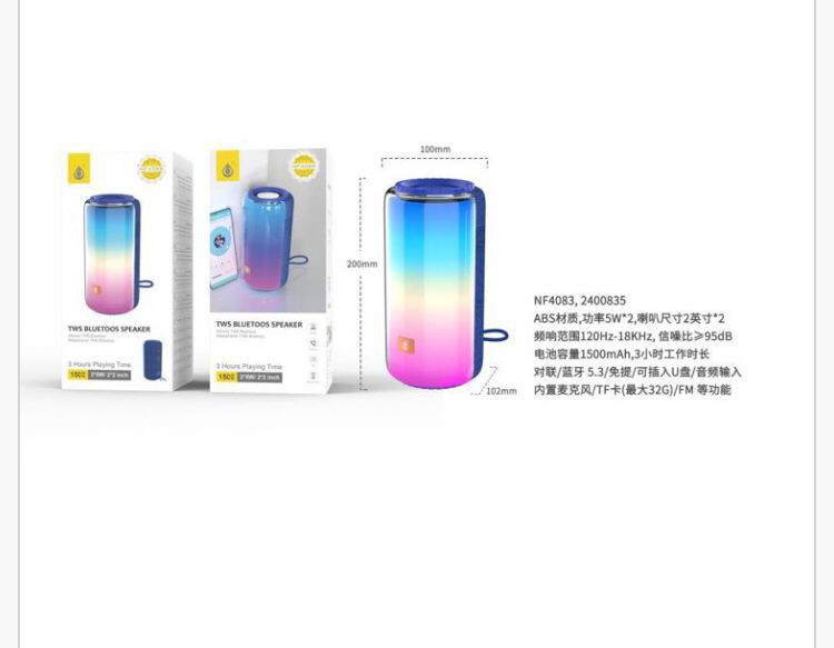 NF4083 AZ Altavoz TWS Bluetooth 5.3 con luz LED,Mano libre /entrada de microfono /TF /FM , 2*5W/3.7V