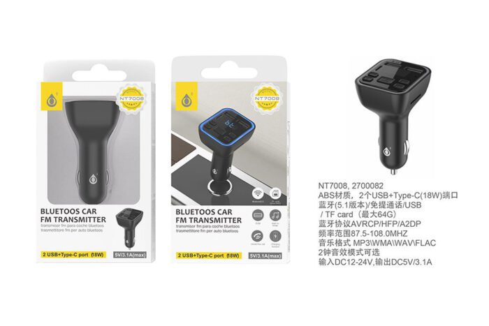 • NE NT7002 Transmisor Blutooth 4,2 De FM Con Microfono Y Pantalla LED, BTS/USB/TF CARD (64MAX),2USB 3,1A Max, Negro