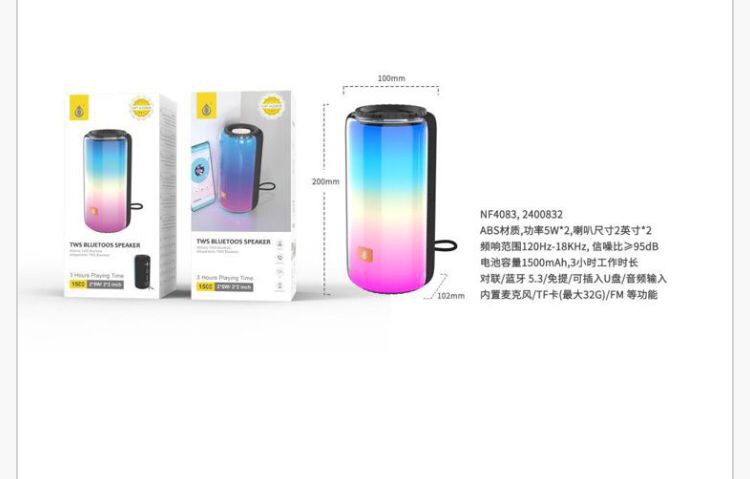 NF4083 GR Altavoz TWS Bluetooth 5.3 con luz LED,Mano libre /entrada de microfono /TF /FM , 2*5W/3.7V, Bateria 1500mAh, Gris