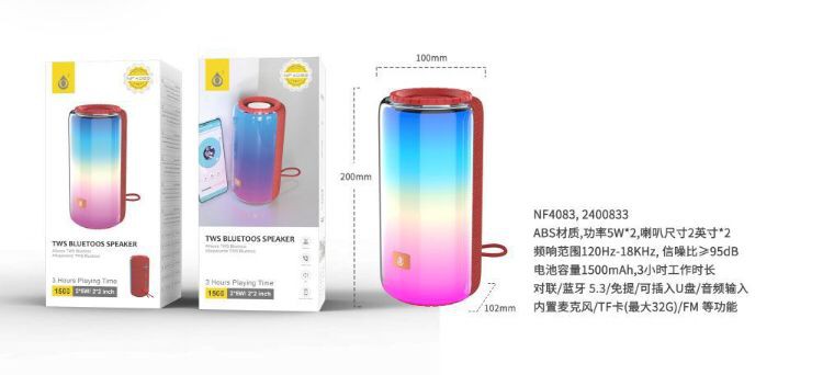 NF4083 RJ Altavoz TWS Bluetooth 5.3 con luz LED,Mano libre /entrada de microfono /TF /FM , 2*5W/3.7V