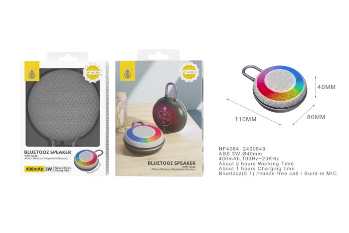 NF4084  GR Mini Altavoz Blutooth 5.1, Frecuncia 100Hz-20KHz, con Mano libre/Incluido Microfono, Bateria 400mAh/3W, Gris