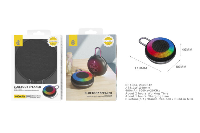 NF4084  NE Mini Altavoz Blutooth 5.1, Frecuncia 100Hz-20KHz, con Mano libre/Incluido Microfono, Bateria 400mAh/3W,Negro