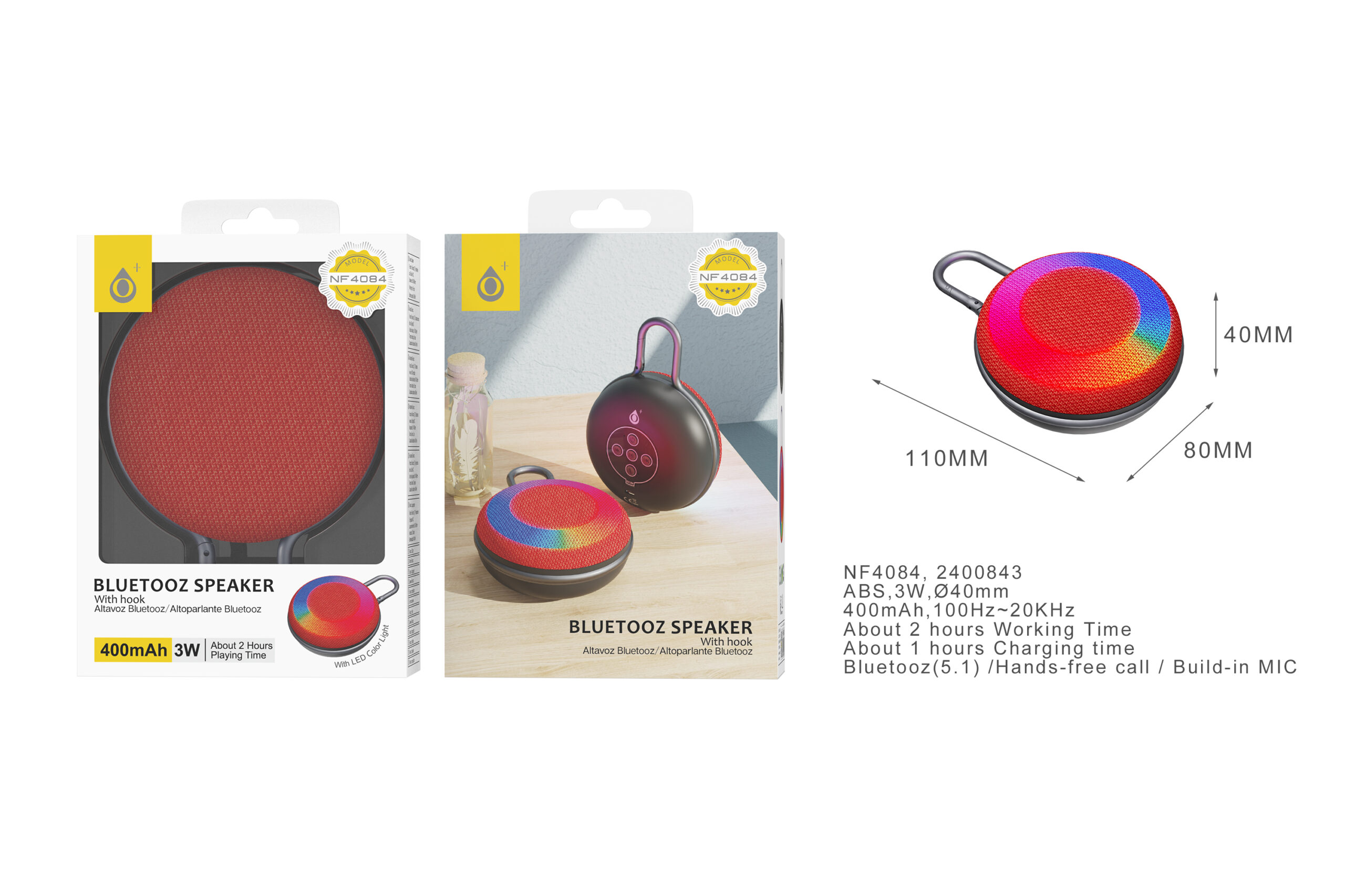 NF4084 RJ Mini Altavoz Blutooth 5.1, Frecuncia 100Hz-20KHz, con Mano libre/Incluido Microfono, Bateria 400mAh/3W, Rojo