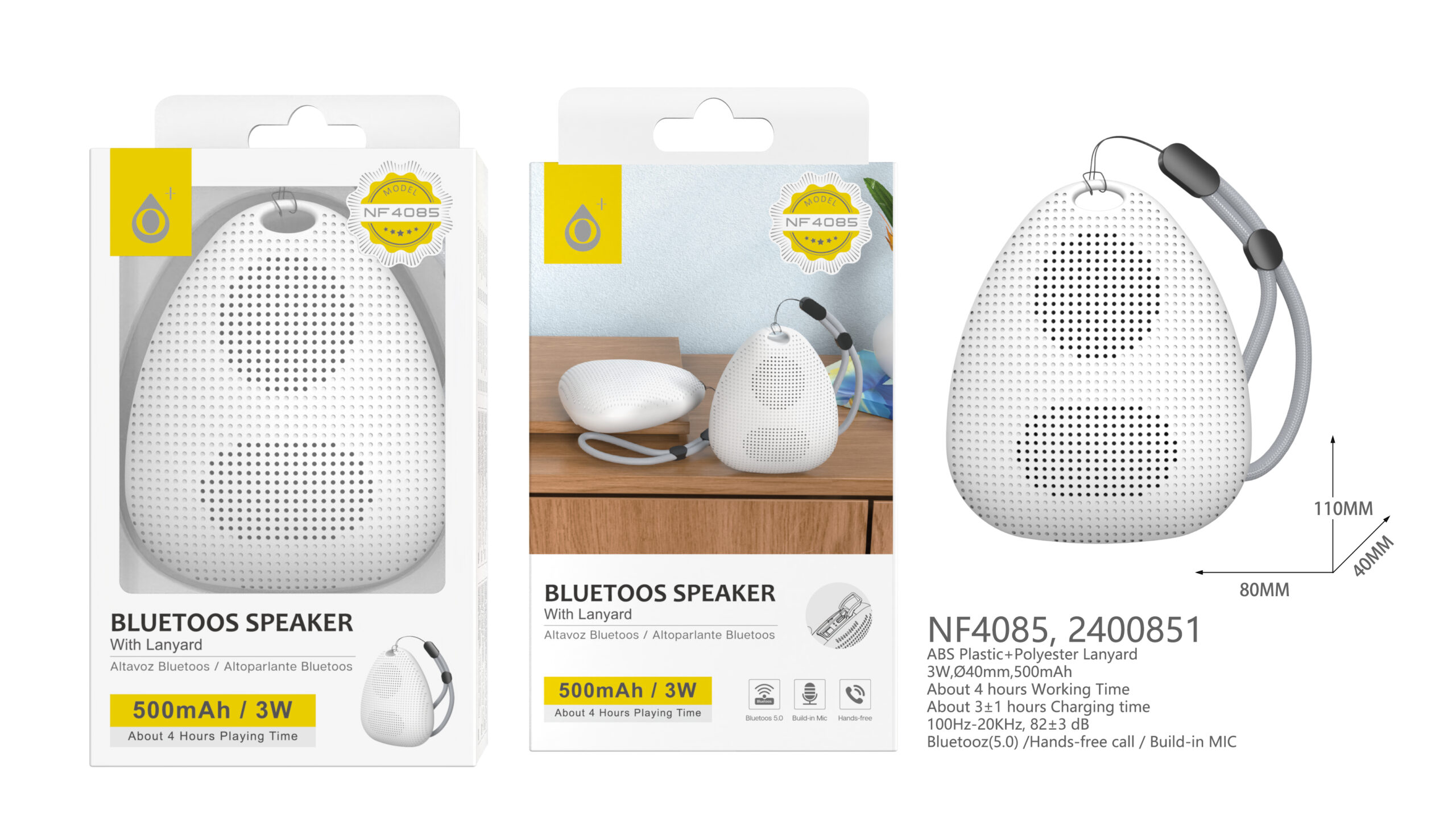 NF4085 BL Altavoz Blutooth 5.0 con Mano libre ,Bateria 500mAh/3W, Blanco