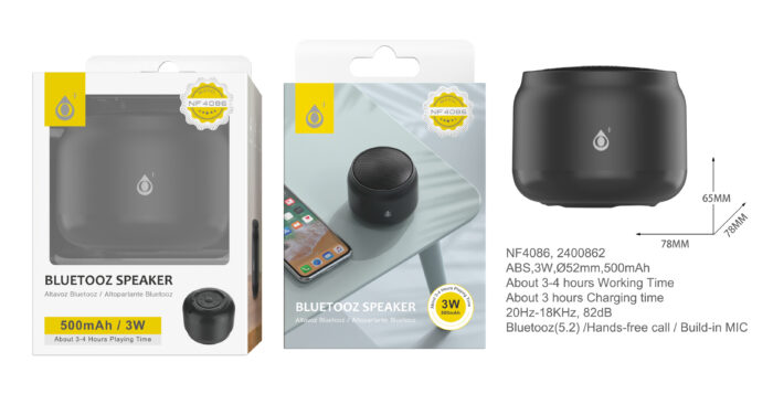 NF4086 NE Mini Altavoz Blutooth 5.2 con Mano libre ,Bateria 500mAh/3W, Negro