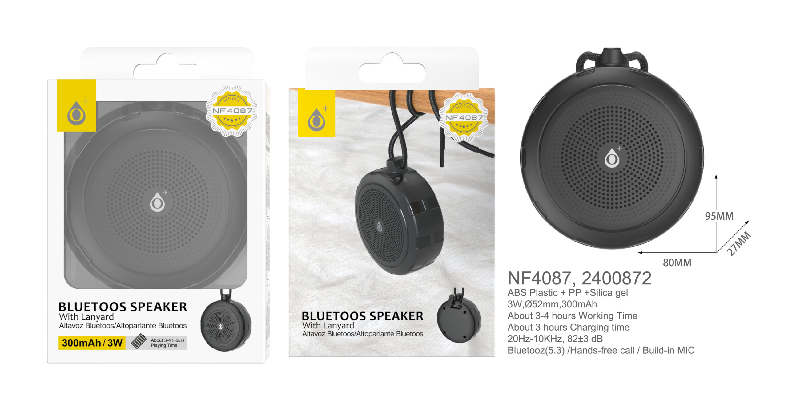 NF4087 NE Mini Altavoz Blutooth 5.3 con Mano libre ,Bateria 300mAh/3W, Negro