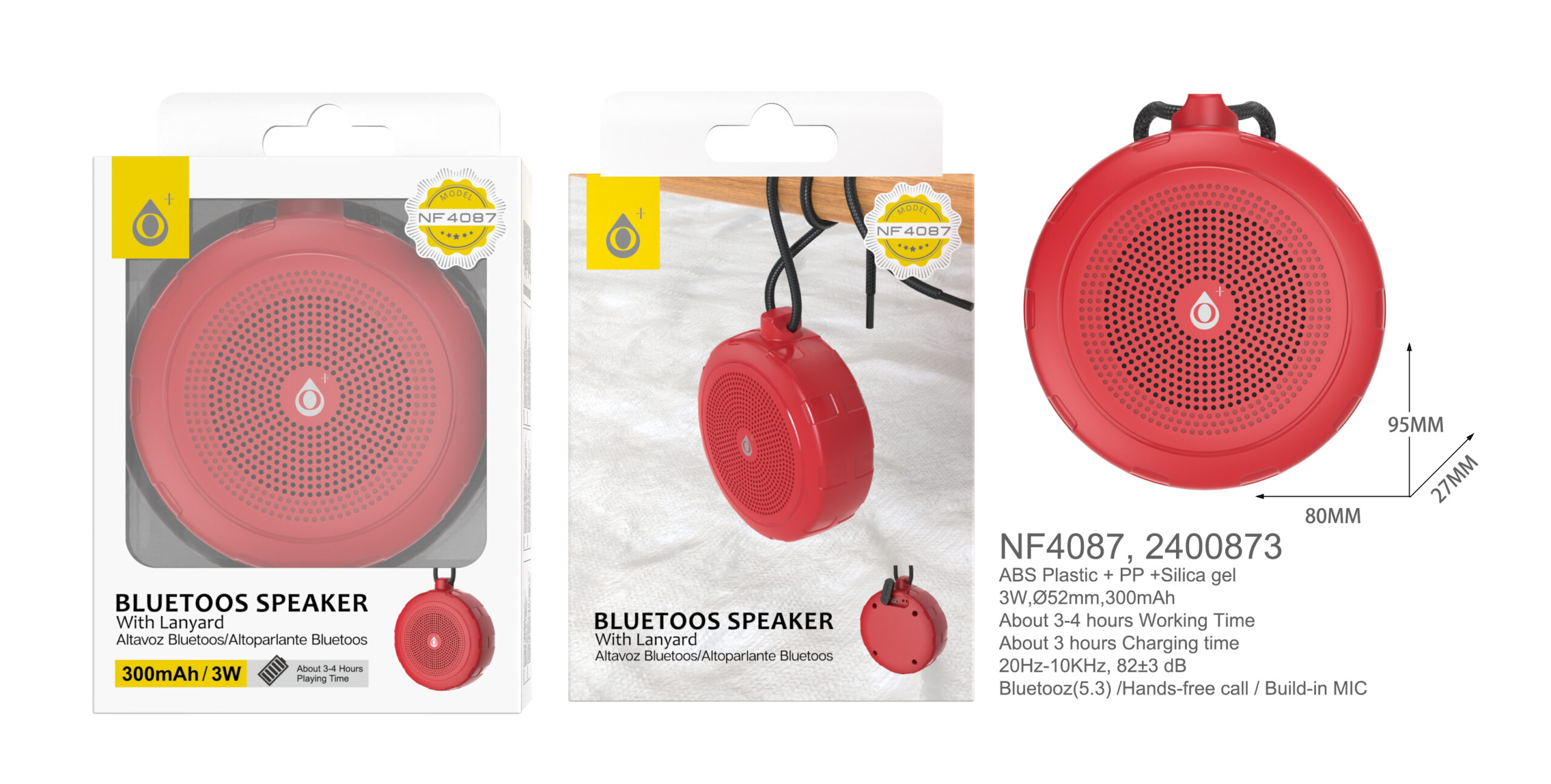 NF4087 RJ  Mini Altavoz Blutooth 5.3 con Mano libre  ,Bateria 300mAh/3W, Rojo