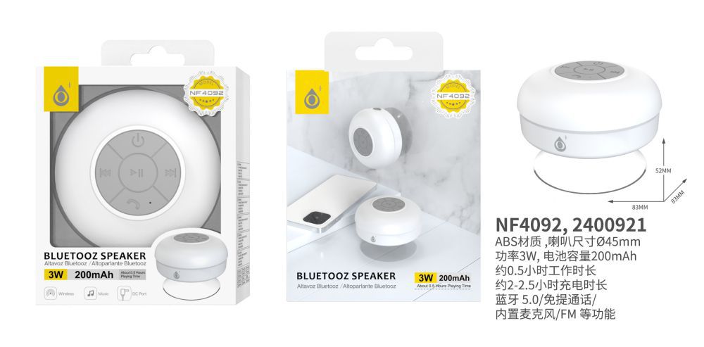 NF4092 BL Mini Altavoz Bluetooth 5.0 , Soporta Mano libre/Entrada de microfono/FM, 3W/200mAh, Blanco