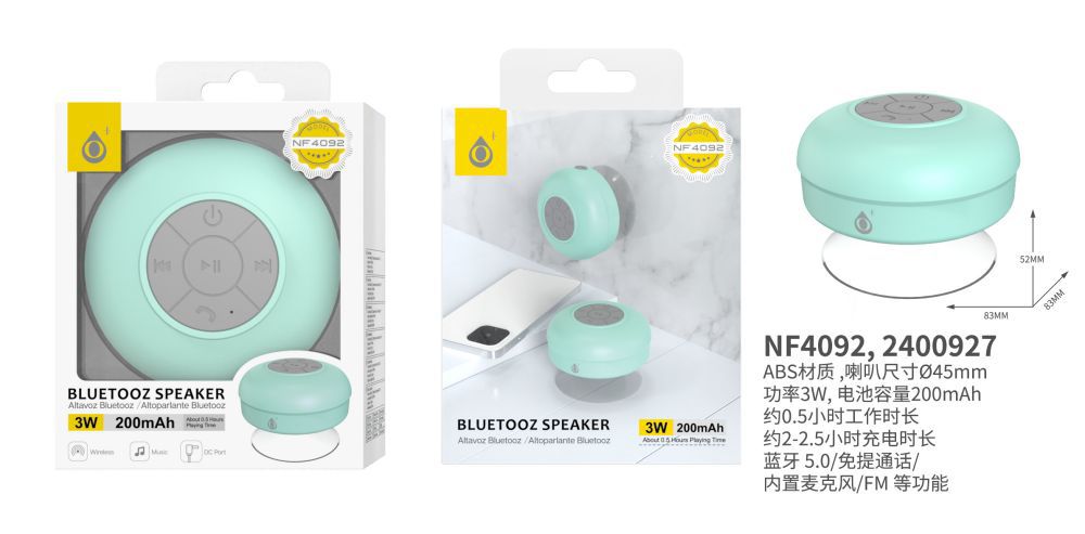 NF4092 VE Mini Altavoz Bluetooth 5.0 , Soporta Mano libre/Entrada de microfono/FM, 3W/200mAh, Verde