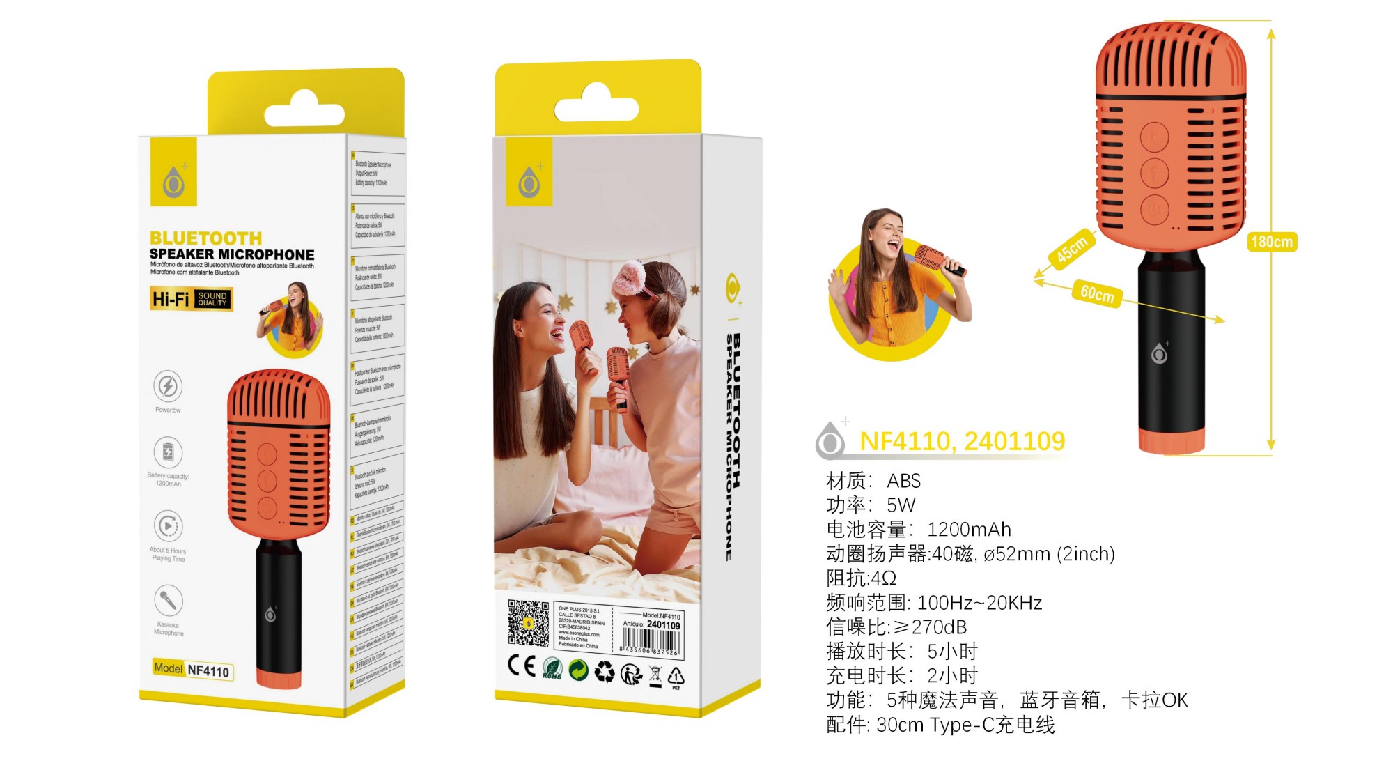 NF4110 NR Microfono HIFI bluetooth con funcion de altavoz,Bateria 1200mAh,Naranja