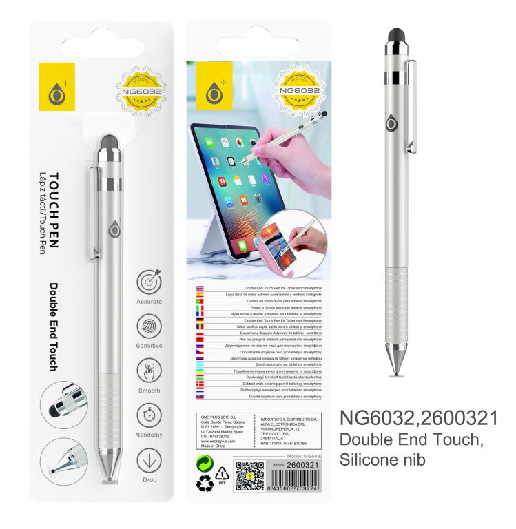 • NG6064 BL Puntero Aluminio con doble punta Intercambiable para movil y tablet ,Blanco
