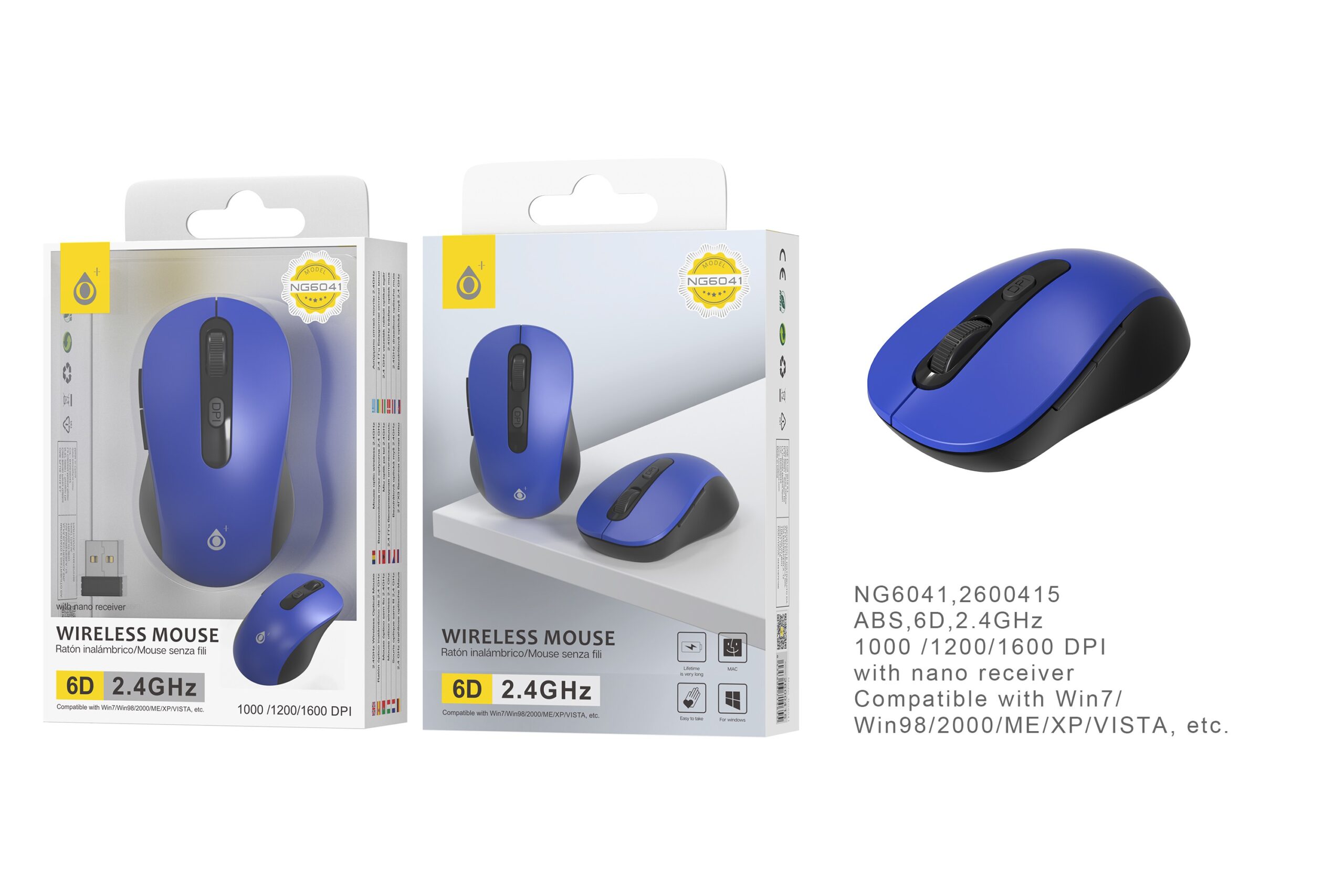 NG6041 AZ Raton Inalambrico Supine, 6 botones, 1600DPI, con Receptor inalambrico, Azul