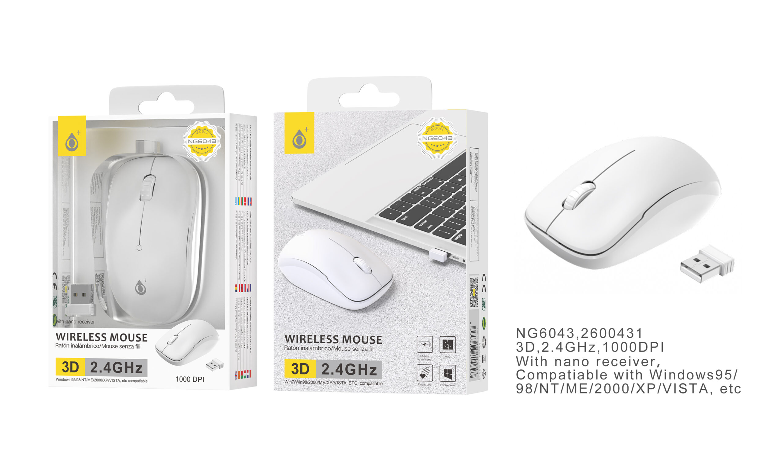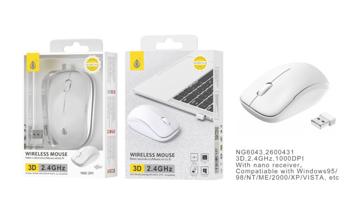 NG6043 BL Raton inalambrico Cindy 2.4 Ghz, 1000 DPI, Blanco