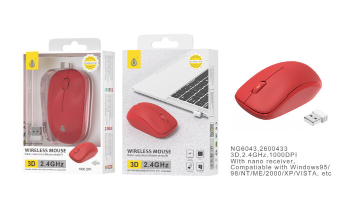 NG6043 RJ Raton inalambrico Cindy 2.4 Ghz, 1000 DPI, ROJO