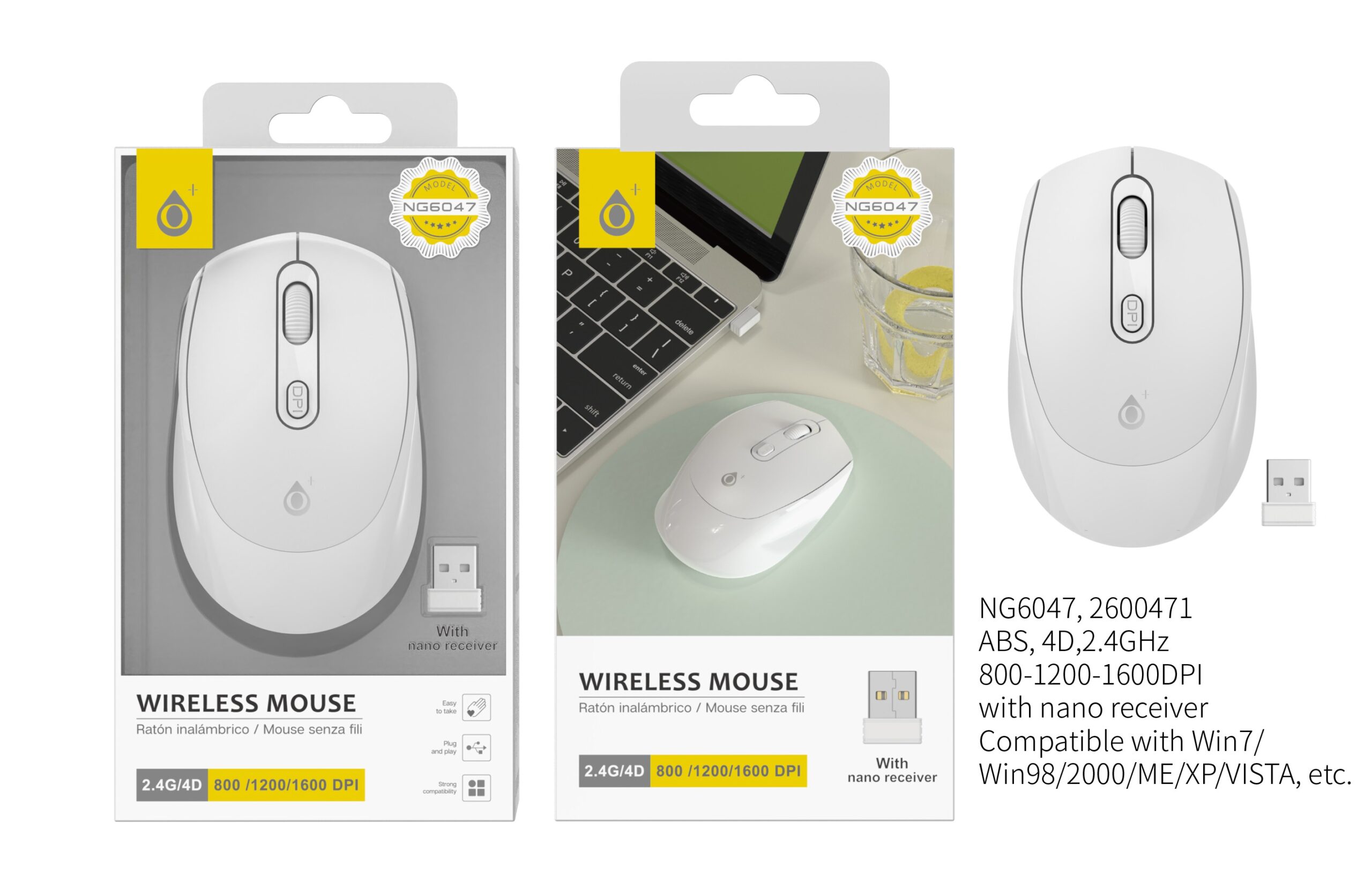 NG6047 BL Ratón Inalámbrico ALINE 4D 800-1600DPI 2.4Ghz,Blanco