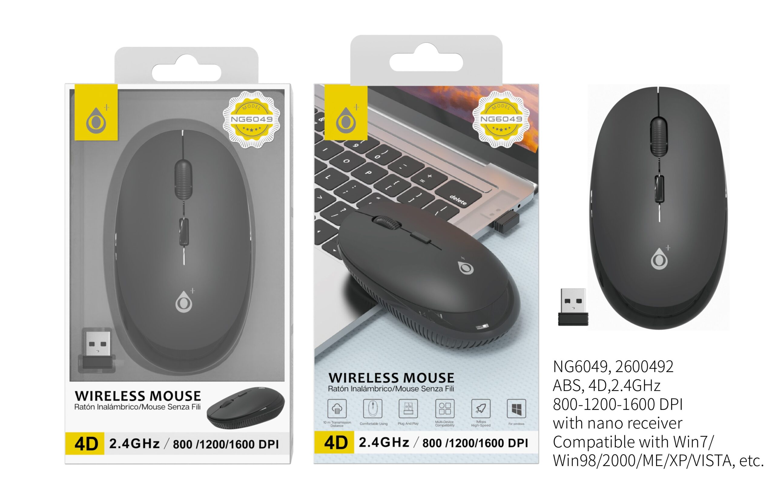 NG6049 NE Ratón Inalámbrico ALISSA 4D 800-1600DPI 2.4Ghz,Negro