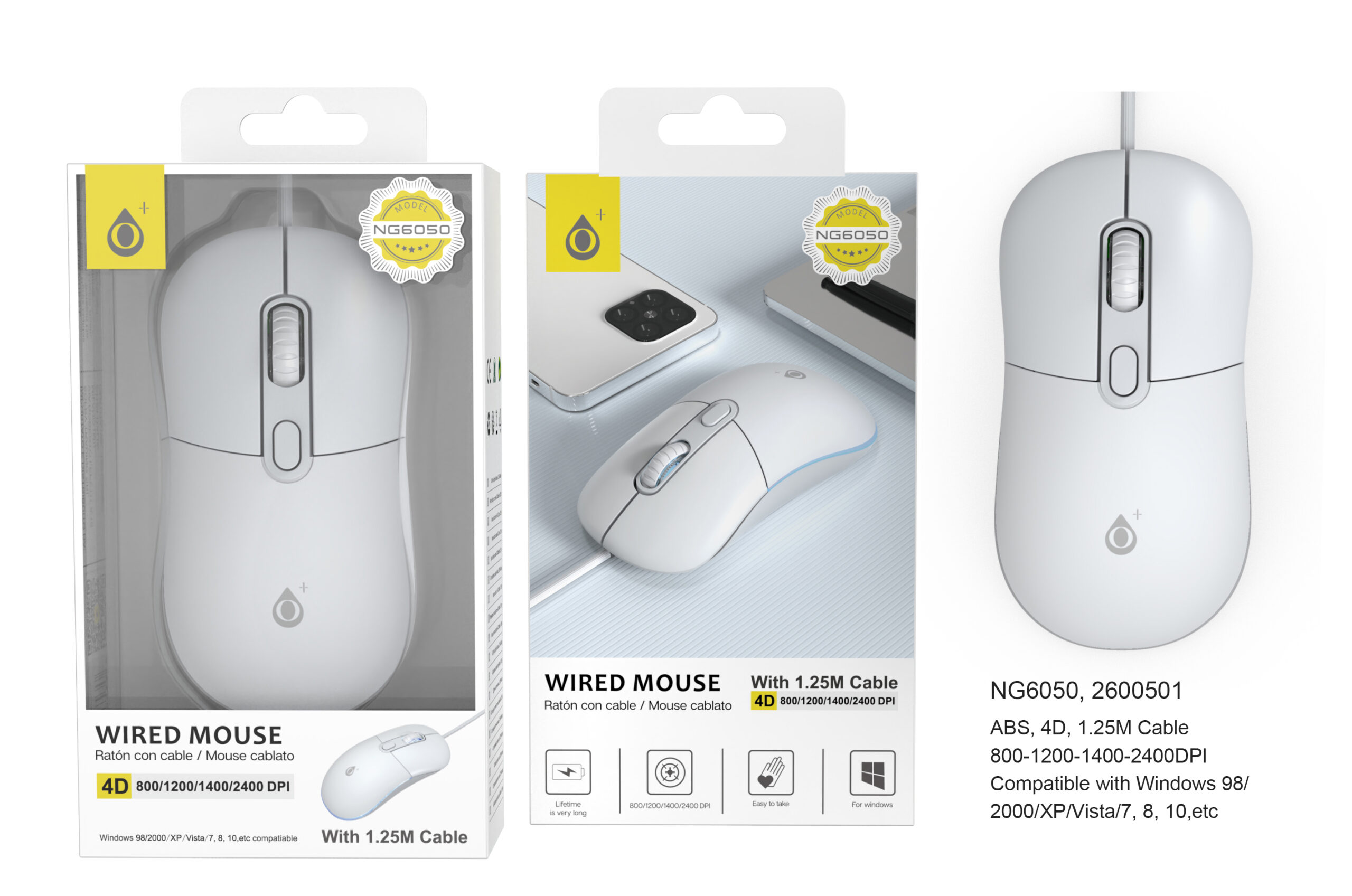 NG6050 BL Raton con cable COLIN ,4D 800-1600 DPI 2.4Ghz, Blanco