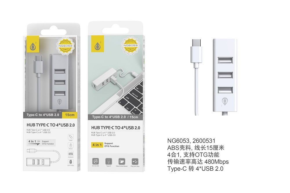 NG6053 BL lector TYPE-C Hub 4 entrada USB Compatible con OTG ,Blanco