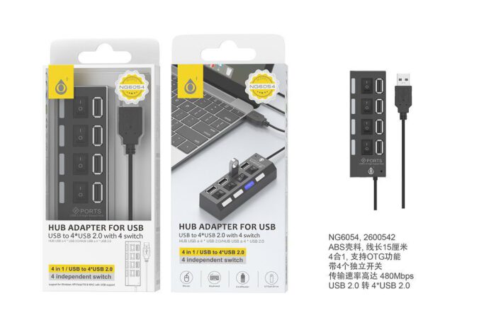 NG6054 NE lector USB Hub con 4 entrada USB Con Interruptor ON/OFF ,Negro