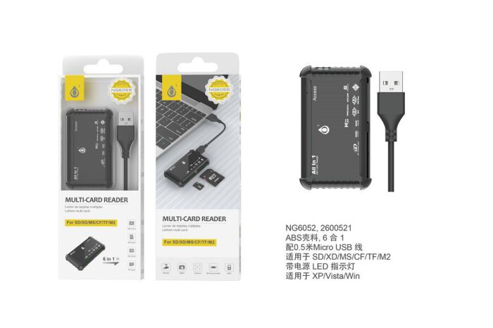 NG6055 NE Lector Multiple de Tarjetas SD/XD/MS/CF/TF/M2 Con cable USB,Negro
