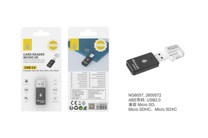 NG6057 NE Lector de Tarjeta USB,  Para Tarjeta Micro SD, Compatible Micro SDHC,XC Negro