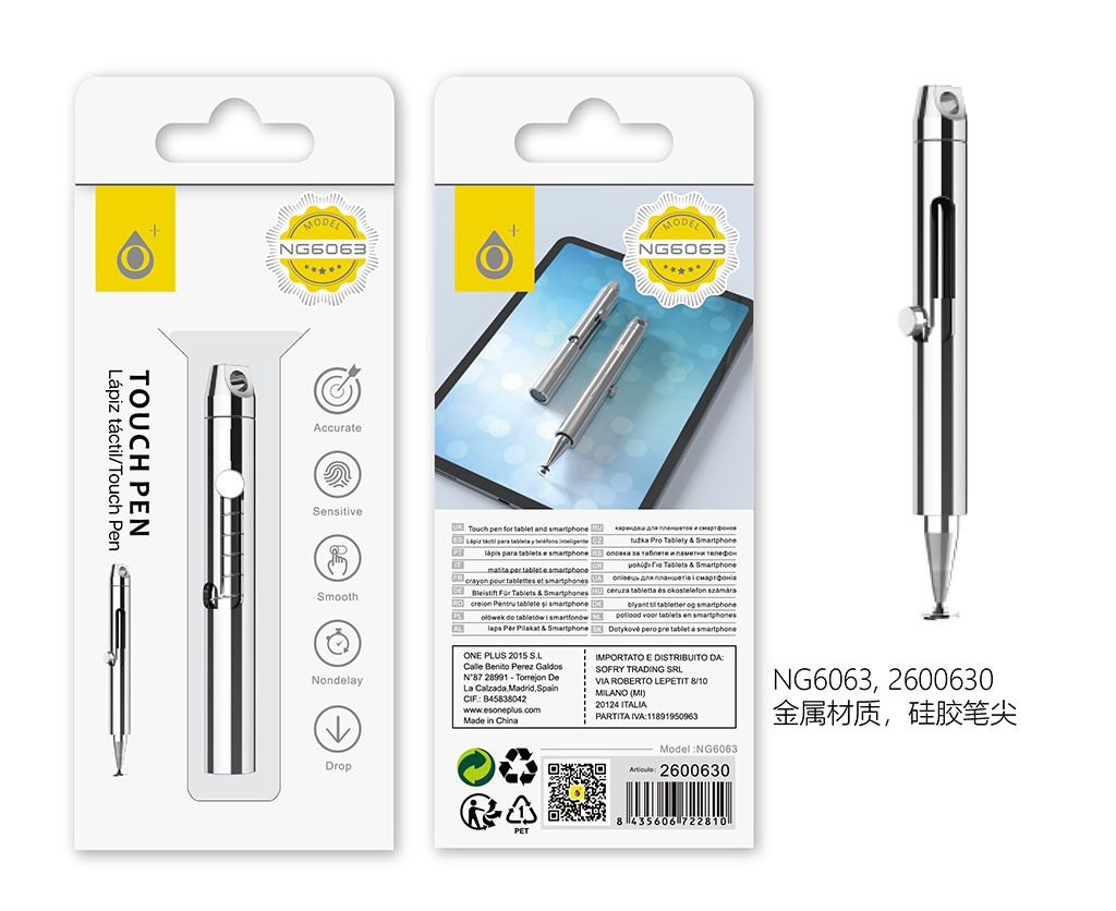 NG6063 PT Puntero Aluminio Fino con Punta de Disc Silicona para Moviles y Tablets,Plata