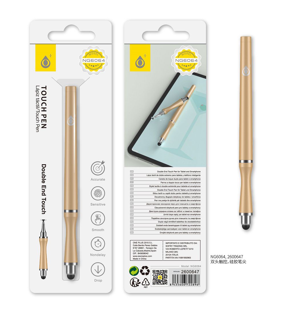 NG6064 OR Puntero Aluminio con doble punta Intercambiable para movil y tablet ,Oro