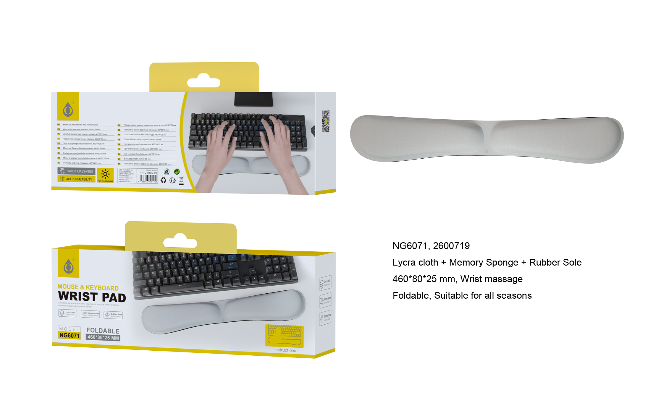 NG6071 GR ReposamuNecas Plegable para Teclado, Con espuma de Memoria, 460*80*25mm, Gris