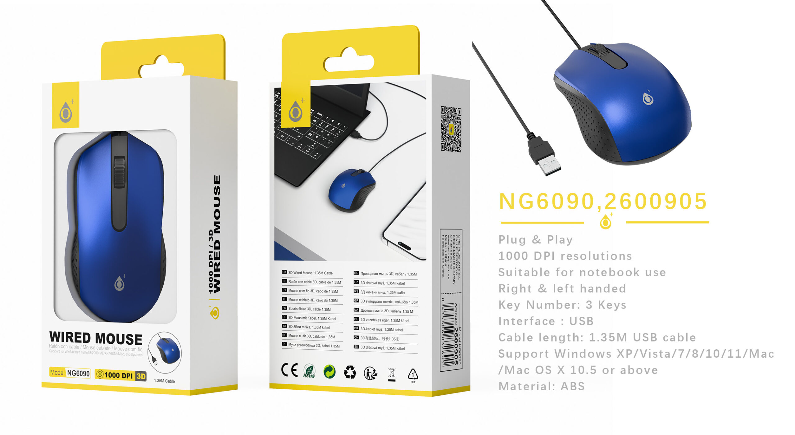 NG6090 AZ Raton 3D con cable 1.35M, 1000 DPI, Azul
